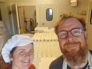 Pour transformer notre lait en fromage, nous ajoutons de la présure, et du petit-lait issu des transformations fromagères précédentes, pour faire office de ferment lactique.